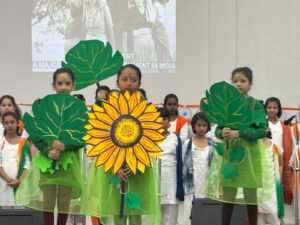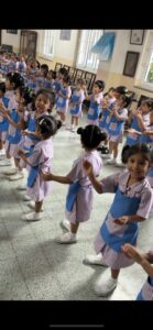 The children of Lower KG celebrated Independence Day with great zeal and enthusiasm. Adorned in vibrant hair accessories in shades of saffron, white, and green, they beautifully reflected the colours of the Indian Flag. With pride in their voices, they sang patriotic songs and the National Anthem, and saluted the Tricolour with deep respect.
