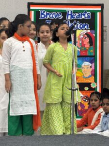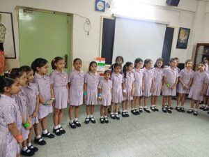 The students of Class 2 proudly celebrated Independence Day on Thursday 14 August with great enthusiasm and patriotic spirit. The programme began with some students chosen as narrators speaking about the contributions of great freedom fighters. This was followed by singing of patriotic songs and recitations in both Hindi and Bengali. The message for both was of unity in diversity, reminding everyone that we are all united as Indians irrespective of our differences. The programme ended with the National Anthem being sung by all.