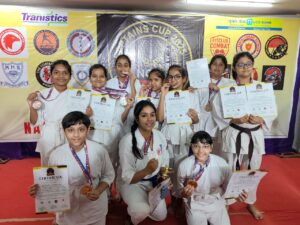 In the individual Kata events, class 5 participants — Arna Bhalotia, Arohini Halder, Dhiaana Poddar, Kavya Khater, Riddhima Ghosh, Rudrakshi Chatterjee, Samaira Agarwal, Shivanshika Sanghvi and Zayesha Kamal — won a total of 9 medals: 3 Gold, 2 Silver, 3 Bronze and 1 Copper.
