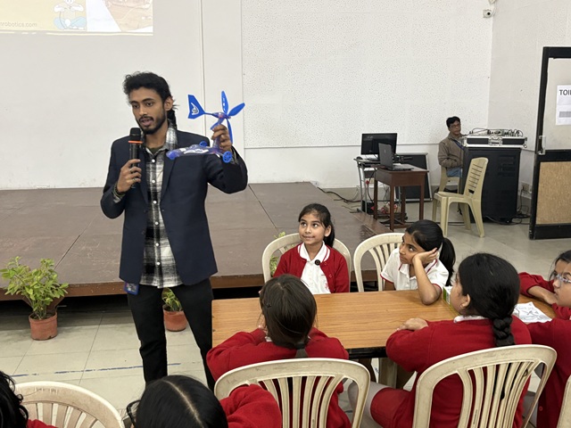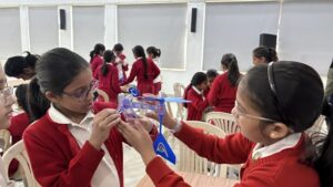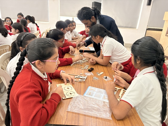 Students of Classes 4 and 5 enthusiastically participated in a variety of practical activities. Class 4 explored renewable energy by building wind-powered cars and solar-powered robots, gaining insights into sustainability and environmental responsibility. Class 5 stepped into the role of young engineers, constructing cranes to understand compound machines and creating solar-powered robots to reinforce the importance of alternative energy.