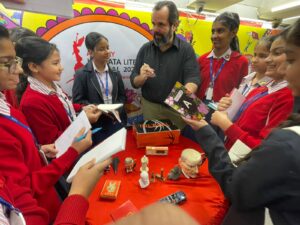 The students interacted with Mr. Norman Coady in the session ‘Fun with History’ and with Tonmoy Roy Choudhury in ‘Wordom’ that included highly engaging word games. ‘There was a Time: The Charm of Historical Fiction.’ was an engaging session with Madhurima Vidyarthi, Tarana Husain Khan and Harshali Singh. ‘Leads on management and leadership’ saw Akshay Jaitly, Nirupama Subramanian and Rajesh Ramakrishnan in conversation. Such thought provoking sessions enabled the students to engage with topics beyond the prescribed curricula and afforded them the opportunity to engage in myriad conversations ranging from the creative process to the exploration of the volatile fabric of history and linguistics.